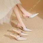 サンダル レディース ミュール ヒール6センチ 痛くない 脱げない スパンコール 美脚 疲れにくい ハイヒール ピンヒール おしゃれ 小さいサイズ