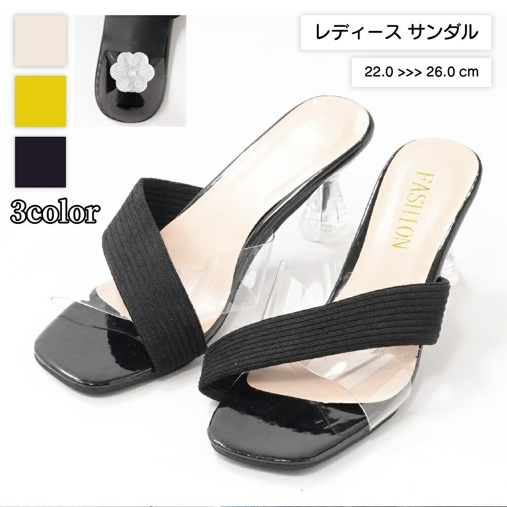 送料無料 サンダル レディース ミュール クリアサンダル クロスデザイン クリアヒール 6cm 透明 太ヒール おしゃれ かわいい 涼しげ 透け お出かけ カジュアル デイリー 春夏 女性用 婦人用 ブラック イエロー オフホワイト