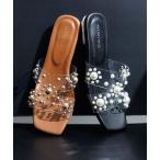 サンダル 「新色追加」ラインストーンストラップミュールサンダル レディース