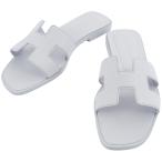 未使用品◇HERMES エルメス 071002Z オアジス Hロゴ レザー サンダル ミュール サンダル ホワイト 37 保存袋付き イタリア製 レディース