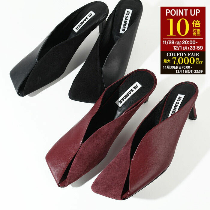 【P10倍対象&クーポン】JILSANDER ジルサンダー ミュール シューズ レザー スクエアトゥ ハイヒール J16WP0004 P6442 レディース ブラック ワインレッド ヒール ロゴ