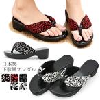 下駄 サンダル レディース 日本製 木目調 印伝 花柄 痛くない 草履 雪駄 トング 下駄風サンダル msg-80381 あすつく