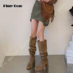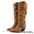 ロングブーツ レディース くしゅくしゅ 美脚 ブーツ ローヒール 履き口 ゆったり 大きいサイズ ジョッキーブーツ チャンキーヒール ポインテッドトゥ 痛くない