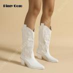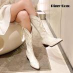 カウボーイブーツ ウエスタンブーツ ミドルブーツ 5mヒール 太ヒール ポインデットトゥ 美脚 かわいい カジュアル お洒落 かっこいい 主役級 存在感 無地 秋