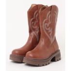ブーツ 刺繍付き 厚底 ミドル ウエスタン ブーツ レディース