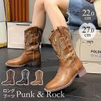 ミドルブーツ レディース ウェスタンブーツ 軽量 耐磨耗 膝下丈 秋 刺繍 身長アップ 安定感 ゴムソール 滑り止め チャンキーヒール 7.5cm ヴィンテージ レトロ調 リーガル お出かけ 通学