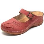 【並行輸入品】Mishansha レディース スリッポン ローファー クローズドトゥ フラットサンダル コンフォートウォーキングシューズ, レッ