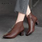 ショートブーツ ブーティー レディース 5cmヒール 無地 本革 ブーツ ファイナー ポインテッドトゥ 美脚 チェルシーブーツ ハイヒール 太ヒール