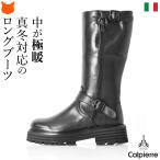 ロングブーツ レディース 本革 内ボア イタリア製 歩きやすい 厚底 ブーツ サイドジップ 暖かい エンジニアブーツ ローヒール ぺたんこ 黒 イタリア ブランド