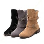 ブーツ レディース エンジニアブーツ スウェード ベージュ ローヒール ベルト 歩きやすい おしゃれ 人気 秋冬【3cmヒール】