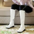 レディース ローヒール エンジニアブーツ 滑り止め サイドジッパー エンジニアブーツ ベルト付き ローヒール ブーツ ロングブーツ レディース ホワイト