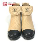 美品 CHANEL シャネル G45144 ターンロック マトラッセ サイドゴア バイカラー ショート アンクルブーツ 23B 靴 シューズ ブーツ中古】