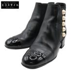 CHANEL シャネル 美品 G46791 イミテーションパール サイドゴア ブーツ シューズ 37C ブラック レディース 【中古】