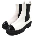 シャネル CHANEL ココマーク サイドゴアブーツ アンクルブーツ 35C ホワイト ブラック G37927 レディース