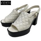 新品同様/ CHANEL シャネル 24P G45567X01000 ラムスキン マトラッセ ヒールサンダル 37.5 ホワイト/ブラック レディース