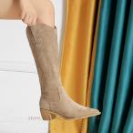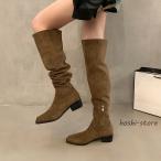 ロングブーツ レディース ジョッキーブーツ ロング丈 ポインテッドトゥ スエード調 太めヒール ローヒール 美脚ブーツ 黒 可愛い シンプル 美脚 おしゃれ 通勤