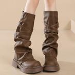 ブーツ レディース ジョッキーブーツ ショートブーツ ミドル くしゅくしゅ チャンキーヒール 大きいサイズ 楽ちん 美脚 ブーツ 秋冬新作 長靴 防寒 歩きやすい おしゃれ