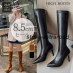 ロングブーツ レディース ジョッキーブーツ ロング丈 ポインテッドトゥ スエード調 ピンヒール ハイヒール 美脚ブーツ 黒 可愛い シンプル 美脚 通勤 おしゃれ