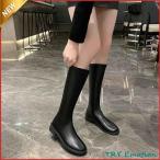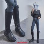 ブーツ レディースブーツ ロングブーツ レディース 膝 ジョッキーブーツ 秋冬 ローヒール ぺたんこ 3cm PU 冬靴 ファスナー