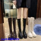 ロングブーツ レディース ジョッキーブーツ 編み上げ 厚底 カジュアル おしゃれ 美脚 歩きやすい 秋冬