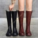 本革 ロングブーツ ブーツ レディース 美脚 ロング ブーツ 歩きやすい ジョッキーブーツ 防滑 防水 履きやすい バックジップ 長靴 長ブーツ カジュアル