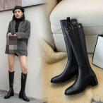 ジョッキーブーツ レディース ロングブーツ ベルトバックル チャンキーヒール 3cm ローヒール レディース ブーツ 膝丈 靴 ブーツ 疲れない 歩きやすい 美脚 春