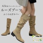 ルーズブーツ レディース ロングブーツ スクエアトゥ チャンキーヒール 4.5cm ブーツ 美脚 森ガール ジョッキーブーツ 靴 ふくらはぎカバー ロンブー