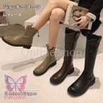 ブーツ レディース 秋冬 ジョッキーブーツ 厚底靴レザーシューズ ロングブーツ 黒 ラウンドトゥブーツ ウエスタンブーツ pu革 歩きやすい 美脚 カジュアル