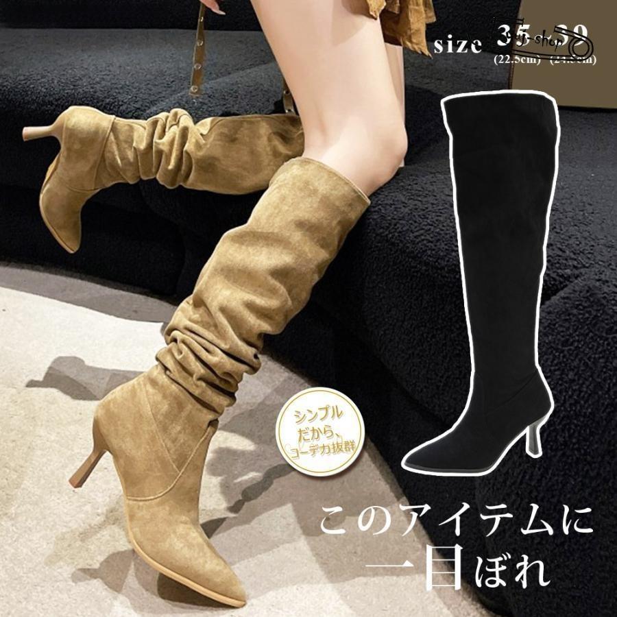 ピンヒール ニーハイブーツ ロング 黒 レディース ニーハイ ブーツ ヒール ロングブーツ サイハイブーツ 長靴 スエード調 ストレッチ ひざ丈 キャバブーツ
