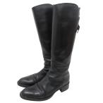 サルトル SARTORE ロングブーツ ジョッキー レザー ローヒール チャンキーヒール ラウンドトゥ 36.5 黒 ブラック ■TC レディース