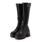 ブーツレディース秋冬ジョッキーブーツ厚底靴レザーシューズロングブーツ黒ラウンドトゥブーツウエスタンブーツpu革歩きやすい美脚カジュアル
