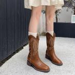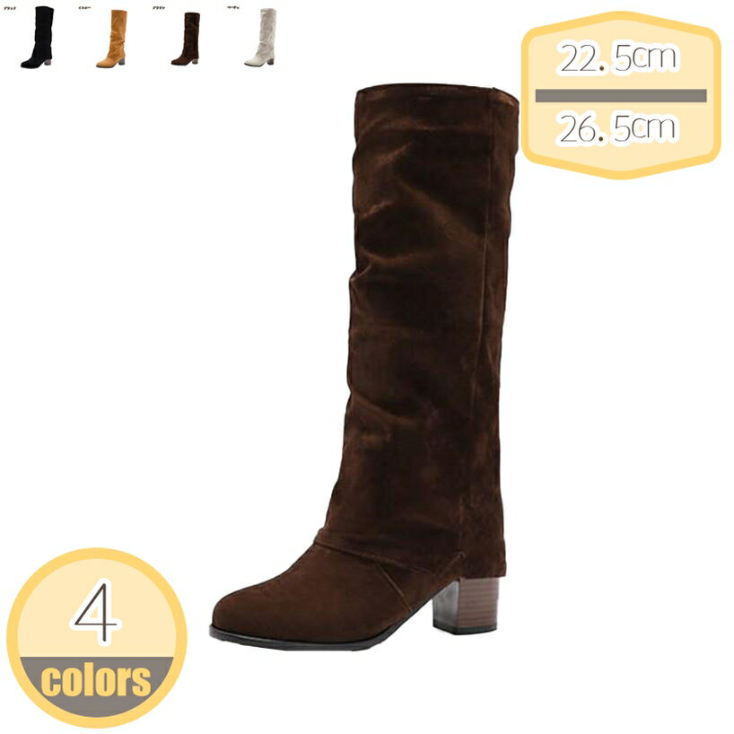 ウエスタンブーツ レディース ロングブーツ 太ヒール ウエスタン ロング ブーツ 低ヒール ローヒール 疲れない ウェスタン スウェード ウェスタンブーツ 美脚 履きやすい ミドル丈 ポインテッドトゥ バックジッパー hikari-plus