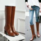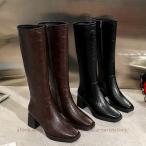 レディース カジュアル 本革風ブーツ ハイヒール ジョッキーブーツ 大きいサイズ ストレッチブーツ 太ヒール 安定感 スクエアトゥ ロングブーツ 小さいサイズ