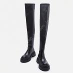 超ロング ブーツ レディース ジョッキーブーツ ロングブーツ ぺたんこ ブーツ ゆったり おすすめ 疲れない おしゃれ 秋冬靴 ローヒールシューズ 長靴 ブラック 美脚