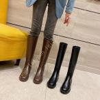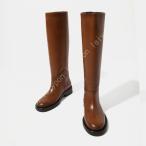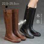 本革 ロングブーツ レディース 長ブーツ サイドジッパー ラウンドトゥ 厚底ブーツ ヴィンテージ ジョッキーブーツ おしゃれ 牛革レザー 長ブーツ 膝丈