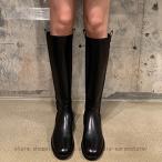 厚底ブーツ ロングブーツ レディースブーツ ジョッキーブーツ 乗馬ブーツ 革ブーツ チャンキーヒール 太ヒール 黒 ブラック 無地 バックジッパー コスプレ靴