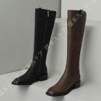 ロングブーツ 本革 ジョッキーブーツ スクエア靴 キレイめ ローヒール サイドジッパー 上品 コーディネート 履きやすい サイドジッパー サイドベルト 美脚