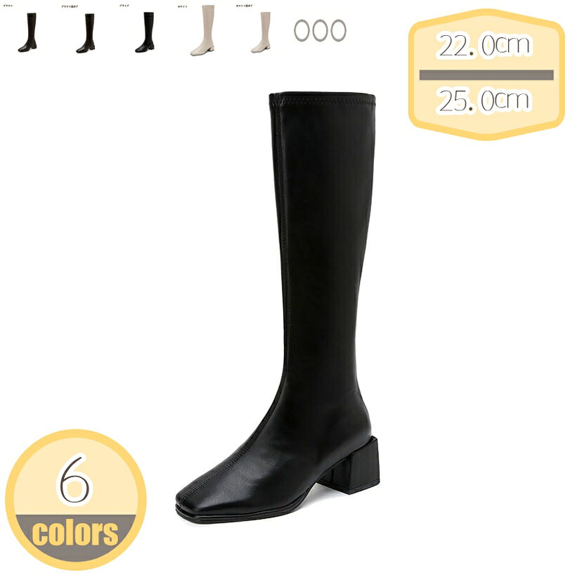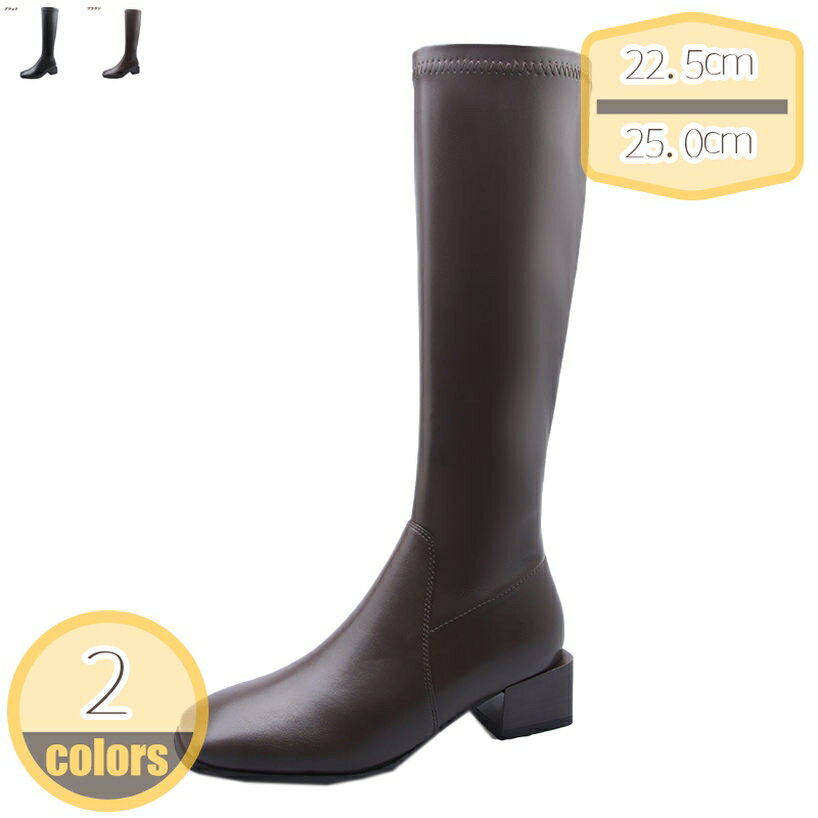 ロングブーツ レディース レディースブーツ 長ブーツ 長靴 太ヒール 防滑 防水 コスプレ 無地 スクエアトゥ 高筒ブーツ カジュアル 4.5センチ 身長UP 美脚 春秋冬 シンプル ジョッキーブーツ ロング 冠婚葬祭 hikari-plus