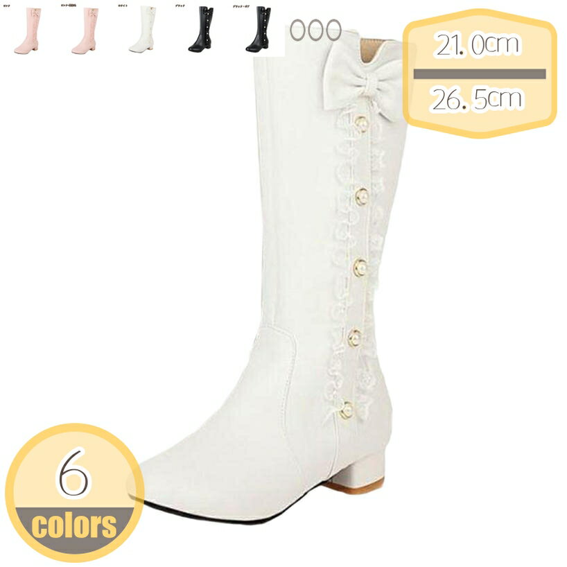 ロングブーツ レディース ジョッキーブーツ くしゅくしゅブーツ ローヒール 防寒 痛くない 歩きやすい 大きいサイズ 小さいサイズ 黒 秋 冬 ブーツ エンジニアブーツ 太めヒール 結婚式 パーティー コスプレ hikari-plus