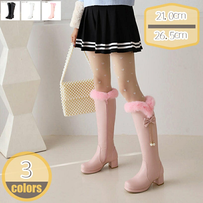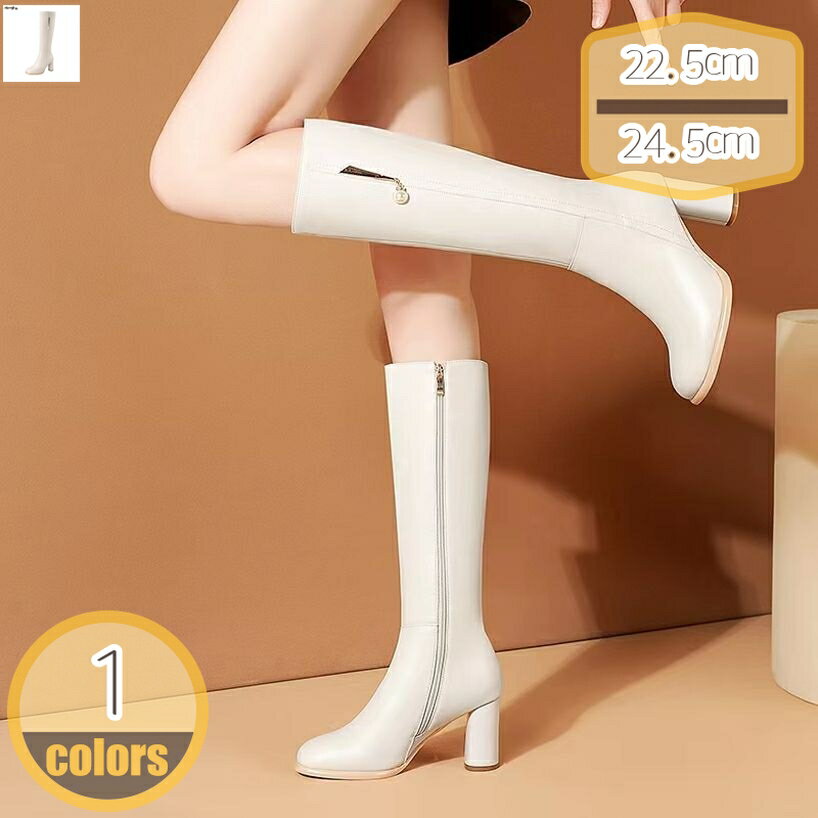 ジョッキーブーツ ハイヒール サイドジップ ブーツ ロング丈 レディース 黒 白 太めヒール ロングブーツ 秋冬靴 防寒 ブーツ 美脚 ラウンドトゥ きれいめ おしゃれ 長ブーツ 膝下 ヒール7.5cm オフィス 通勤 OL カジュアル hikari-plus
