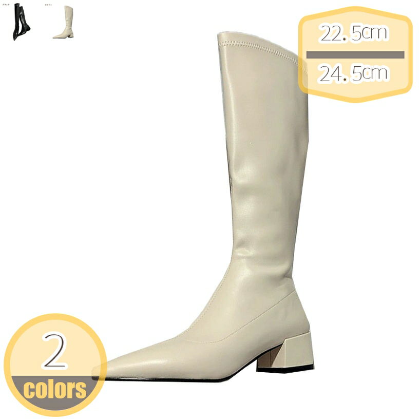 ジョッキーブーツ ローヒール サイドジップ ブーツ ロング丈 レディース 黒 白 太めヒール ロングブーツ 秋冬靴 防寒 ブーツ 美脚 スクエアトゥ きれいめ おしゃれ 長ブーツ 膝下 ヒール3cm オフィス 通勤 OL カジュアル hikari-plus