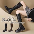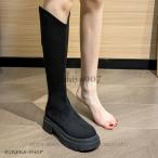 ロング丈 ぺたんこ 厚底 ロングブーツ デザイン ヒール 秋 秋冬 靴 ブーツ ニーハイブーツ 裏起毛 美脚 太ヒール 疲れにくい 高級感