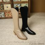 ロングブーツレディース ニーハイブーツ 秋冬 ジョッキーブーツ 黒太めヒールブーツ おしゃれハイヒールブーツ 靴 防寒ブーツロングブーツ大きいサイズ〜25.5cm
