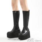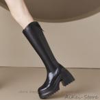 厚底ロングブーツレディース ニーハイブーツ 秋冬 ジョッキーブーツ 黒太めヒールブーツおしゃれハイヒールブーツ 靴 防寒ブーツロングブーツ大きいサイズ〜25cm