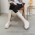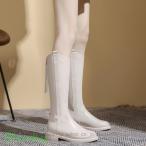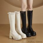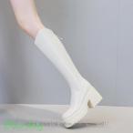 ロングブーツ レディース 厚底 ブーツ ジョッキーブーツ バイク 軽量 歩きやすい 滑り止め カジュアル ロングブーツ 白 ローヒールブーツ チャンキーヒール