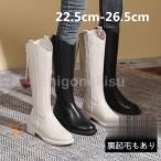 ロングブーツ レディース ニーハイブーツ 内ボアジョッキーブーツ 黒太めヒールおしゃれハイヒールブーツ 靴 防寒ブーツ 通勤 ロングブーツ大きいサイズ〜28cm