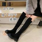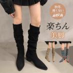 ニーハイブーツ ロングブーツ ニーハイ ブーツ ローヒール レディース 3cmヒール ブラック ストレッチブーツ 靴 美脚 レザー調 ゆったり 疲れにくい 可愛い 秋