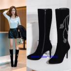サイハイブーツ ニーハイブーツ ストレッチ ポインテッドトゥ 痛くない ロングブーツ レディース ハイヒール ピンヒール 大きいサイズ 小さいサイズ