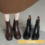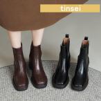 レディース サイドゴアブーツ 本革 厚底 身長アップ ショートブーツ チェルシーブーツ イングランド風 ラウンドトゥショートブーツ 牛革 大きいサイズ 25cm