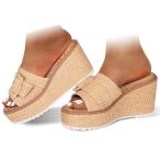 【並行輸入品】GEXECEUSS レディース ウェッジサンダル スロープヒール 厚底 スリッポン スリッパ ノンスリップ ヴィンテージ オープン
